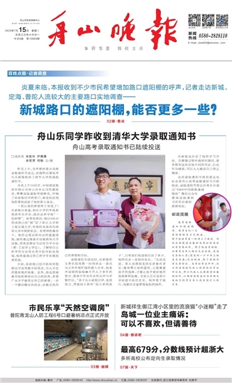 舟山乐同学昨收到清华大学录取通知书