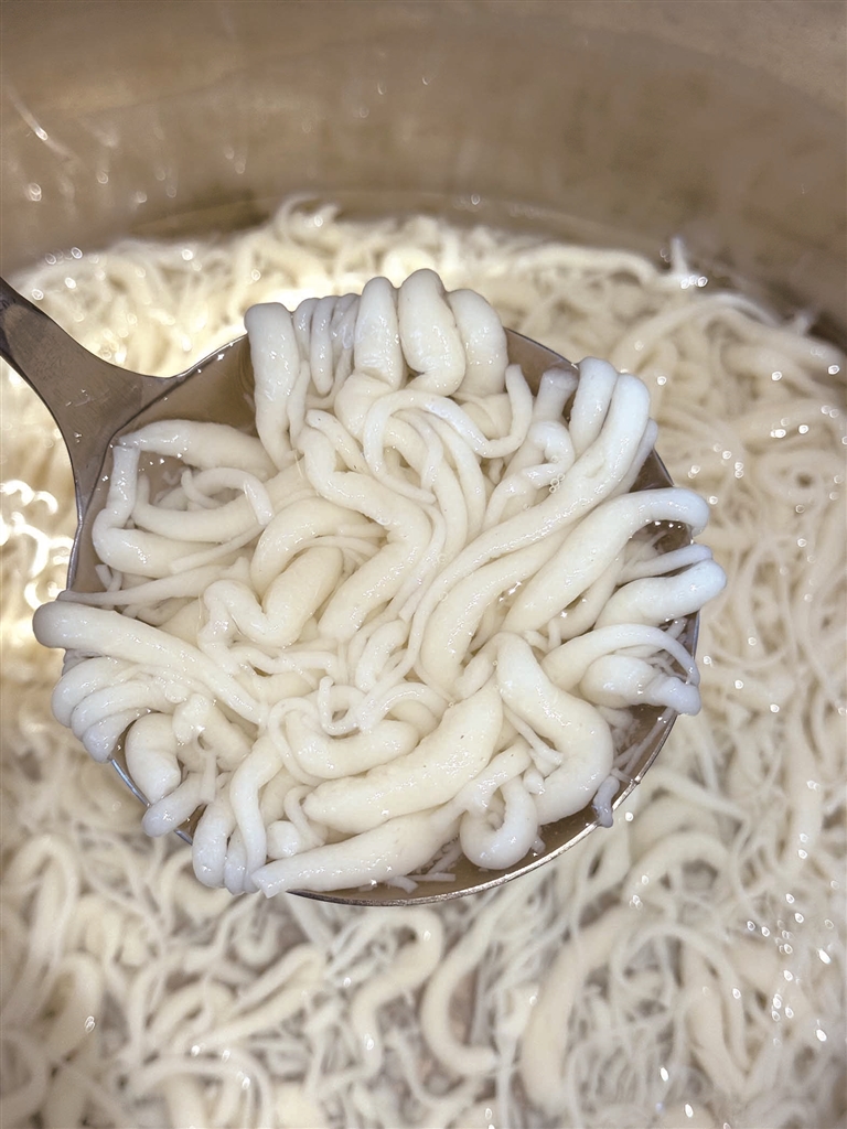 去年尝过小别凉虾的食客们纷纷“入坑”,只认准她家的凉虾。小别心里知道,这份美味源于近乎苛刻的选材与制作。制作凉虾的大米,是她特地采购的达州的指定品牌,这种米黏性极低,就好像天生为成就凉虾独特的弹韧口感而生。选材的时候,她也曾尝试过网购类似米,但压根不是一回事。