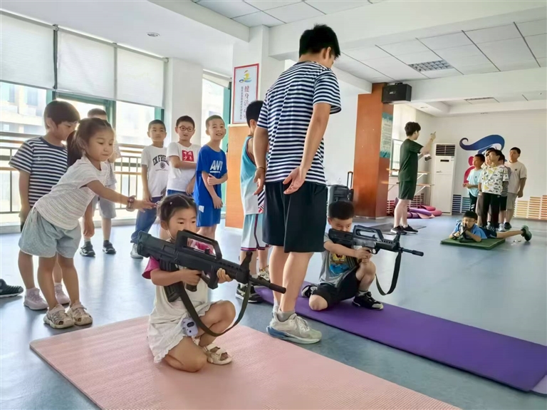 7月24日的“硬核环节”更让孩子们尖叫:先看特警格斗视频“找茬”,再听枪械知识“扫盲”,接着分组练持枪、卧倒、匍匐,最后用叠弹壳比拼“绣花功夫”。