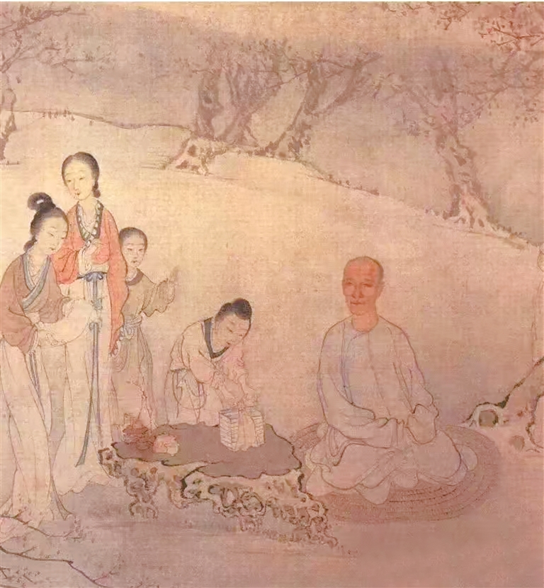 姚复庄(图中团坐老汉)忏绮图局部 清·费丹旭 现藏北京故宫博物院