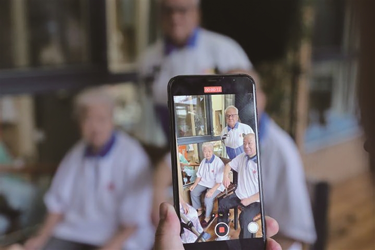 天津静雅老人院的老人们在拍摄视频