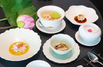 除了高颜值的菜品,“荷花宴”的所有餐具也都是由景德镇特别定制设计的,每一件都融入了荷花、荷叶、莲蓬等荷塘元素,青釉如湖水漾波,连汤盅的造型都仿似半开的荷花,让吃“荷花宴”成为视觉与味觉交织的双重沉浸式体验。