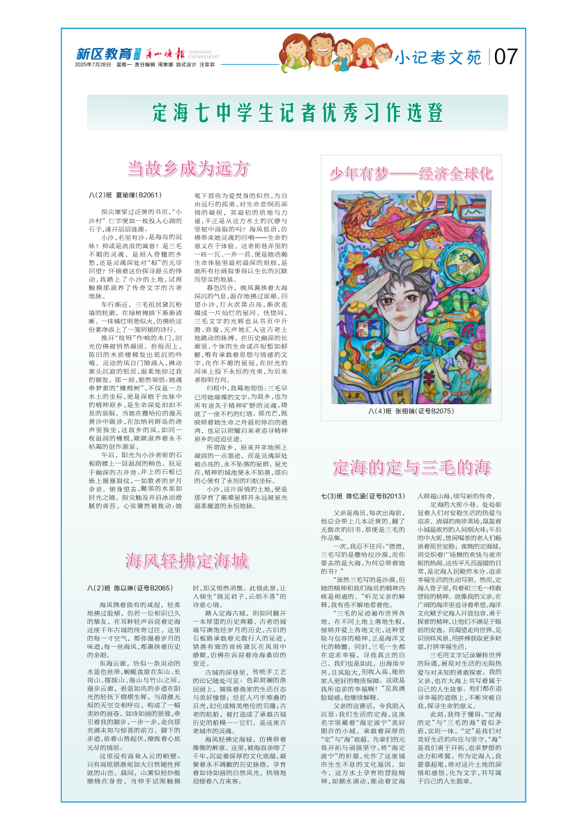 定海七中学生记者优秀习作选登