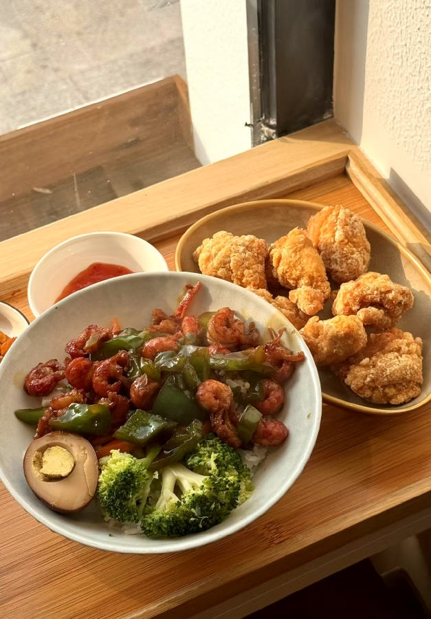 “食寸”曾在新城扎根四年多,迁至东港也已三年有余。时光流转,卤肉饭与红烧肉饭这两道镇店之宝,依然是无数食客心中无可替代的经典。然而每一次菜单更新,都是一次对食客味蕾的郑重邀约。葱葱肥牛饭,翠绿鲜嫩的香葱碎铺满肥瘦相间的牛五花,酱汁浓郁醇厚;罗勒碎肉饭,独特的异域香气融合中式炒肉的镬气,清新又开胃。