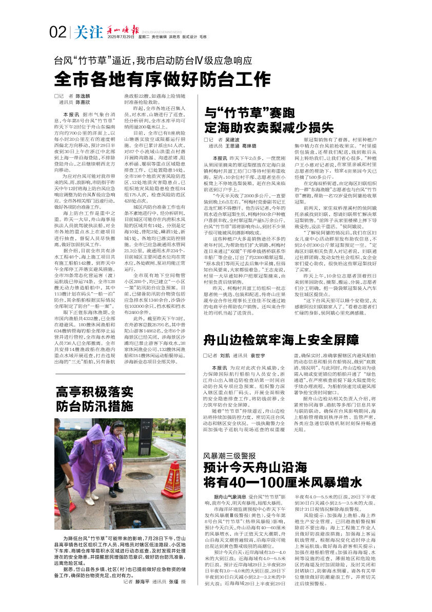 全市各地有序做好防台工作