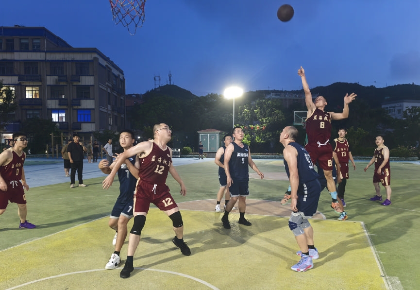 哨声一响,赛场瞬间化作比拼斗志、凝聚情谊的舞台。身着“牧岛蓝”的部队官兵凭借过硬的体能和严密的战术配合,频频发动快速反击,精准的3分远投更是引得阵阵惊叹;身着“机关红”的乡干部们则依靠默契的传切配合和顽强的防守紧咬比分。每一次激烈的篮下拼抢,都迸发着军地双方奋勇争先的豪情;每一个精彩的进球得分,都伴随热烈掌声与喝彩。比分在紧张的氛围中交替上升,胶着异常。海风裹挟着助威声浪,将“军民团结如一人”的热烈氛围推向高潮。