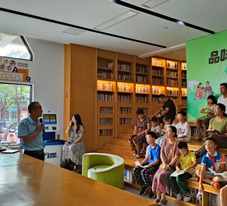 本次活动是“我在海边读书”系列活动之一,活动邀请《咫尺是蓬莱》编纂组副组长刘辉分享舟山诗词文化、历史故事和该书的编撰背景。从徐福东渡传说,到葛玄采药翁山;从盐田万顷的富都乡,到抗清志士的海中洲……刘辉用一个个故事带领大家跨越古今,解密舟山的“蓬莱基因”。