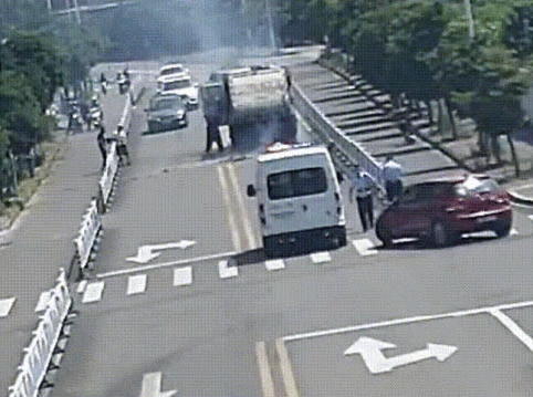 街头一辆环卫车突然起火冒烟
