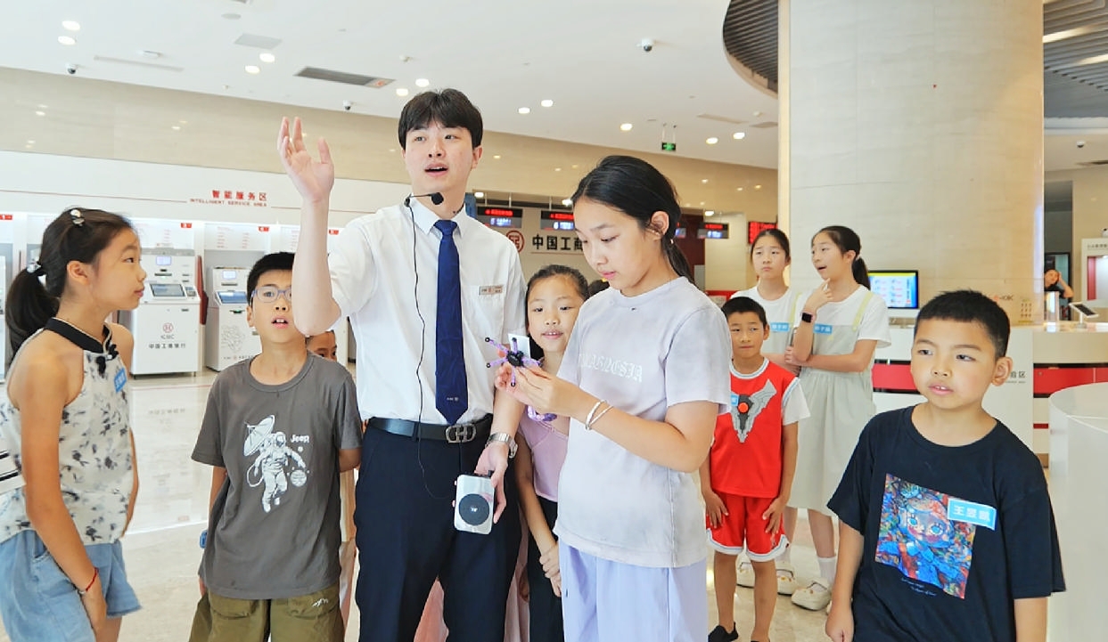 活动中,工作人员笑盈盈地带领大家“解锁”营业厅各功能区,小朋友们边走边看,建立起对银行职能的直观认知。“把钱存入银行,与把钱放进储蓄罐里有什么区别?”“存折上的正负号分别代表了什么含义?”主持人抛出一个个问题,在交流互动中将金融知识娓娓道来。情景体验环节,面对“客户”提出的业务需求,“小柜员们”在工作人员的提示下化身专业小达人,仔细询问每一个细节,认真核对每一项信息,存取款流程变得生动可感。