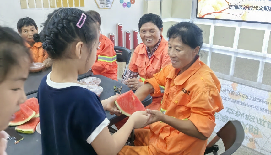8月7日上午,立秋当日,定海区新时代文明实践中心热闹非凡,一场以“品瓜献爱”为主题的特别活动在此温情上演。