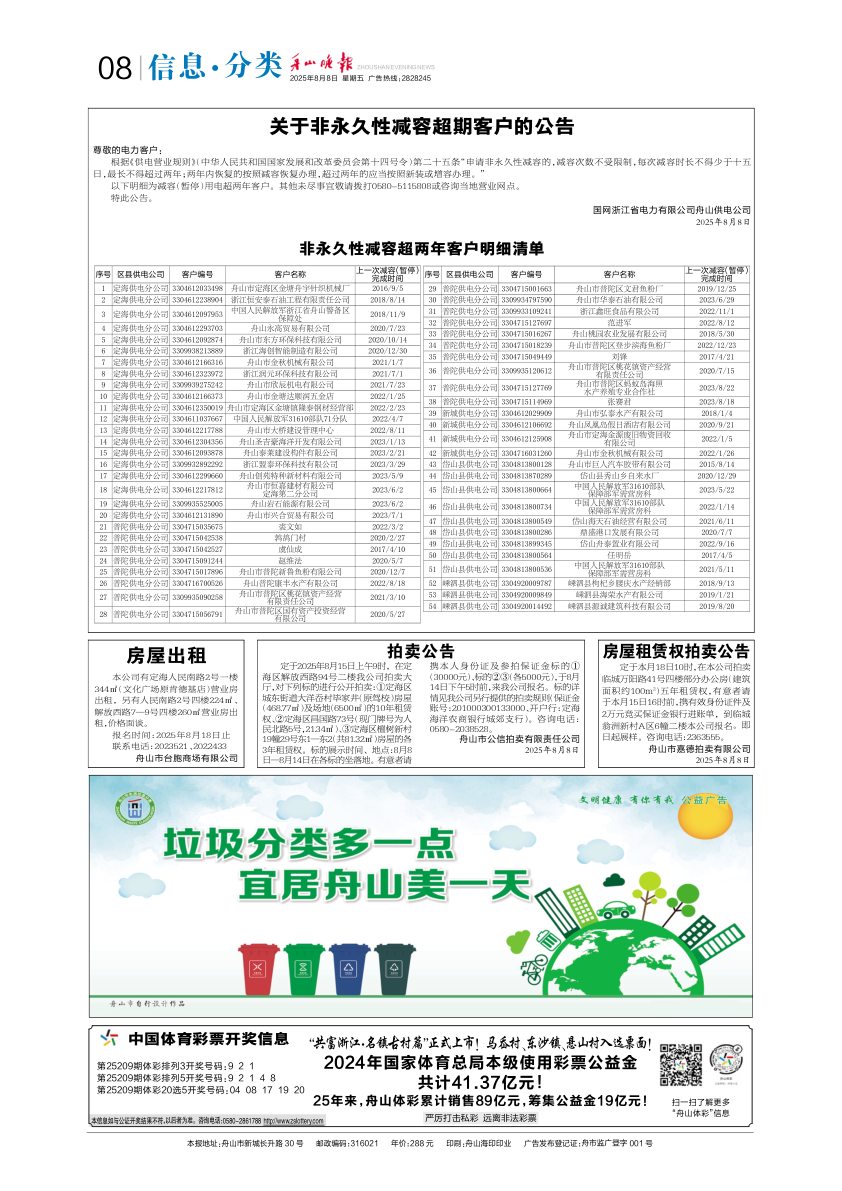 关于非永久性减容超期客户的公告