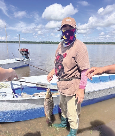 黑龙江边,船家拎着冷水鱼