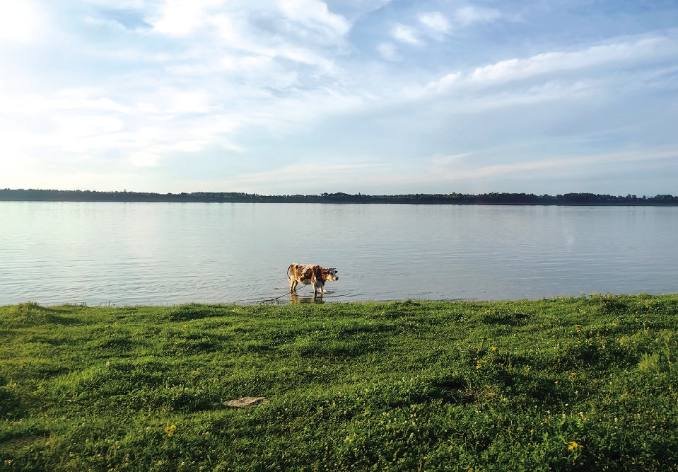 一路向北,边境小城嘉荫成为三位舟山女子此行的偏爱之地。黑龙江在小城边浩荡流淌,对岸即是俄罗斯的土地,漫步江边,草地、绿树、牛群,泛着光泽的无垠“长”江,风光无限。在这里,她们品尝了黑龙江里的冷水鱼,用铁锅大灶炖煮,滋味格外鲜美。还有大灶烹制的豆角、茄子、土豆,起初大盆上桌时,令她们望而生畏,最终却奇迹般“光盆”,印证了东北大妈朴实的自信:“都要吃光,不许剩哦!”