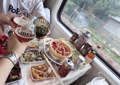 自带饮食:准备充足的零食饮料(如她们自带的精酿啤酒),火车餐车选择有限且价格较高。