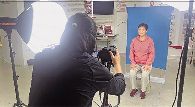记者给老人拍照