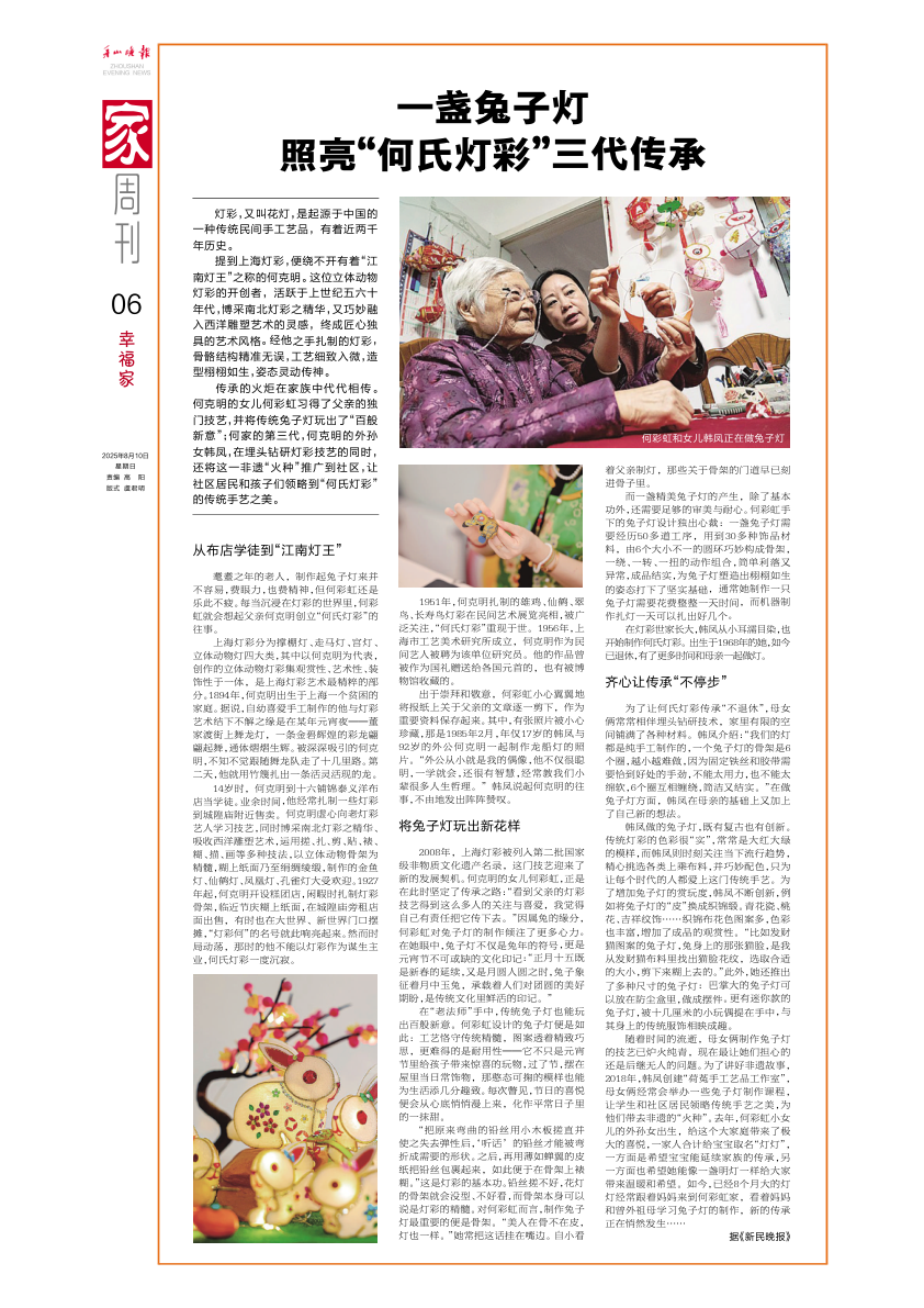一盏兔子灯照亮“何氏灯彩”三代传承