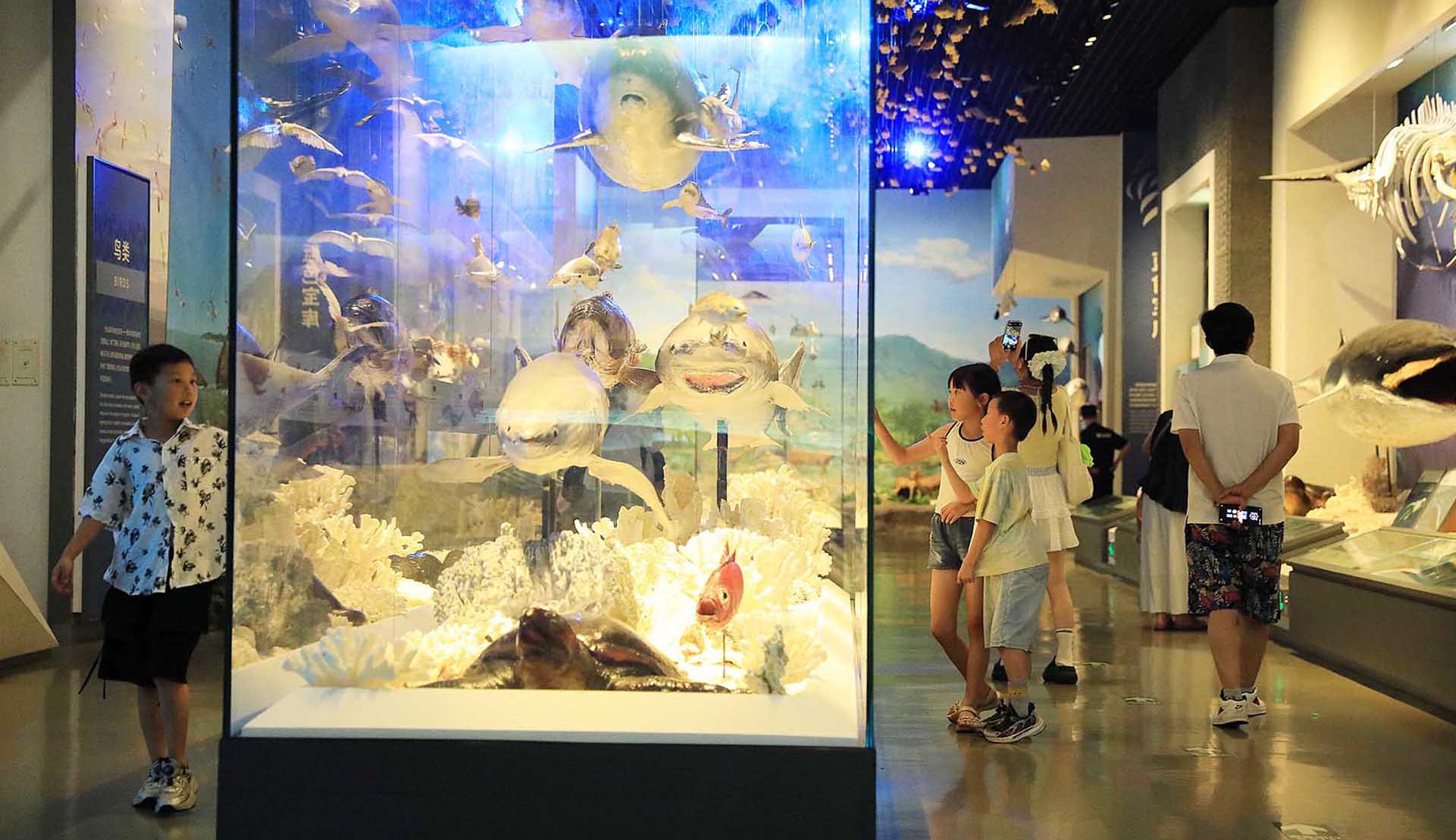 近日,在舟山博物馆“蓝色宝库”展厅,游客络绎不绝,畅享夏日里海洋文化带来的清凉 记者 陈永建 摄