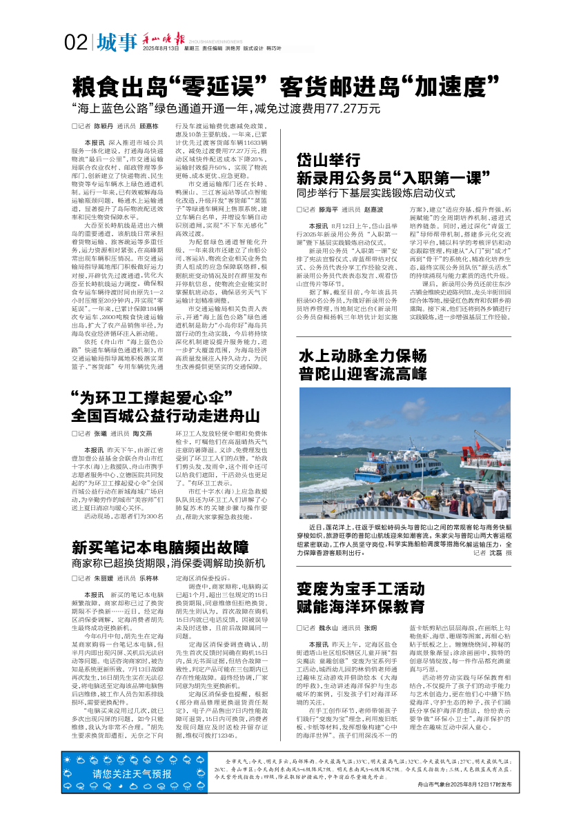 水上动脉全力保畅普陀山迎客流高峰
