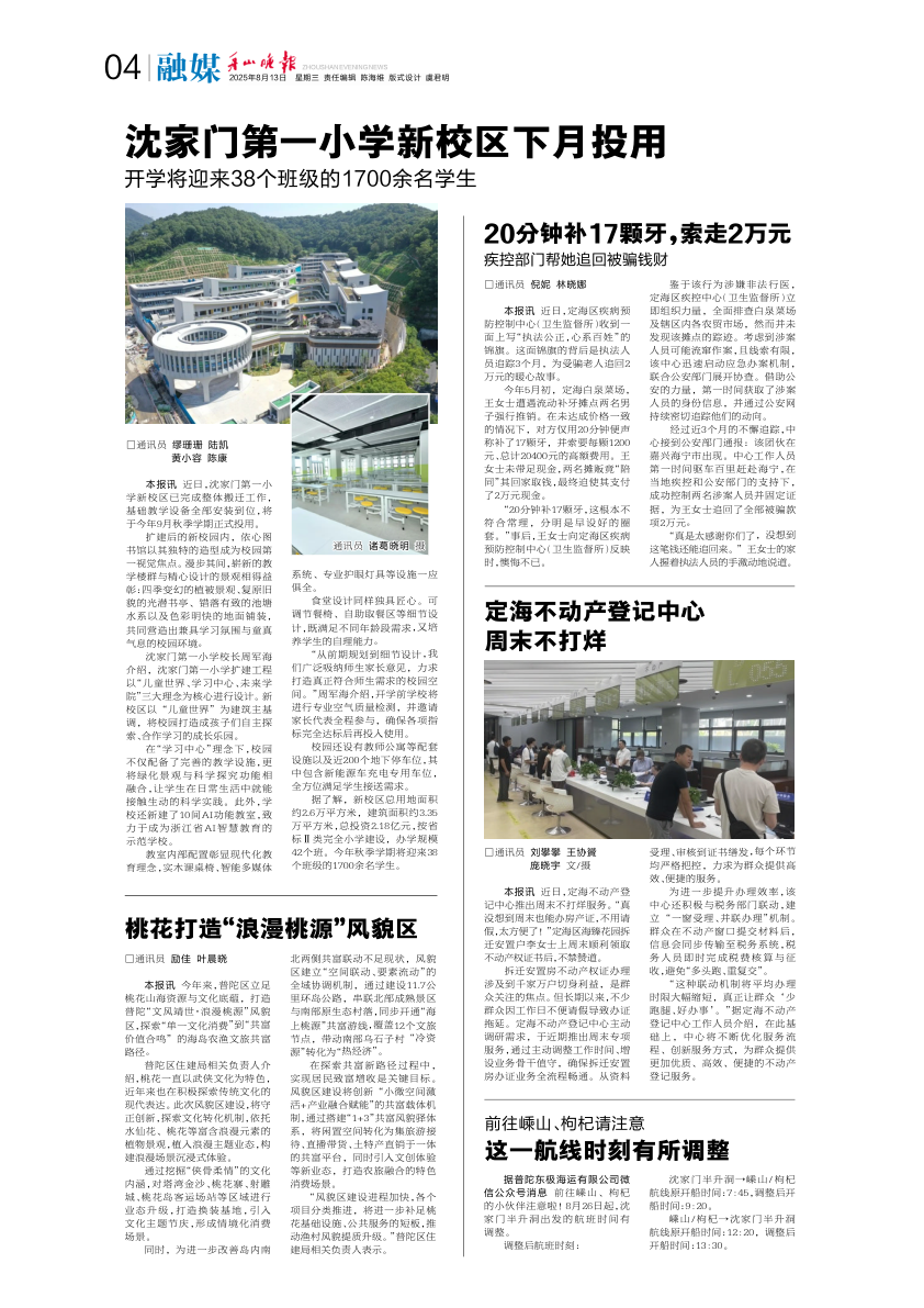 沈家门第一小学新校区下月投用