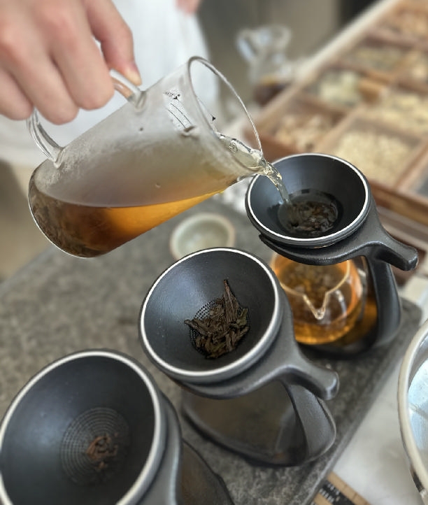 在“千新方”消磨半日,看夏梦超从容温壶、注水、出汤,听他娓娓道来每一味药材的脾性、每一款茶叶的来历,店内的时间仿佛也被茶香浸染得缓慢而悠长。