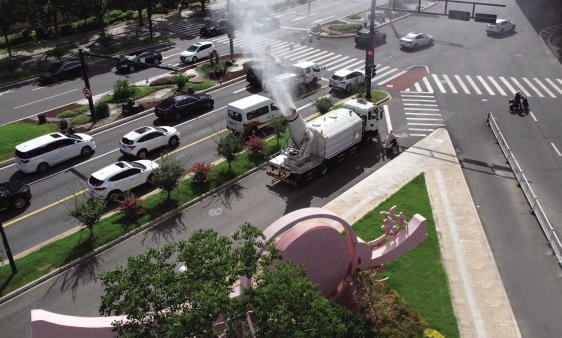 定海“洒水+雾炮”齐上阵为城市消暑降温
