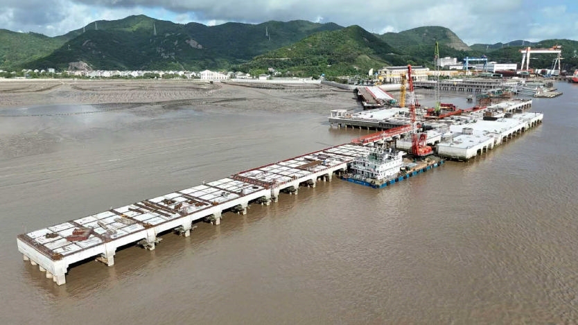普陀区六横大岙码头改扩建工程建设目前已完成总工程量的80%以上。224米引桥面层水泥混凝土浇注已经完成,现在正集中精力做好358米的码头面层水泥混凝土的浇注工作,确保11月上旬全面完工。该码头投入使用后,将大大缓解六横大岙车客渡船舶的停靠压力,为促进六横经济社会的快速发展起到重要的作用。 通讯员 刘生国 摄