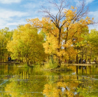 金塔胡杨林:沙漠中的金色火焰在巴丹吉林沙漠边缘,金塔胡杨林正上演着自然界最震撼的生命赞歌。3000年的等待,只为20天的绚烂——当十月的阳光洒落,整片胡杨林瞬间点燃,金黄的叶片在湛蓝天空下燃烧,倒映在如镜的湖水中,构成一幅流动的油画。漫步木质栈道,脚下是细软的白沙,耳边是胡杨叶的沙沙作响,恍惚间仿佛穿越千年,听见了丝绸之路上驼铃的回响。日暮时分,登上观景台远眺,整片胡杨林在夕阳中化作金色的海洋,与远处起伏的沙丘相映成趣,这是大西北最慷慨的视觉盛宴。