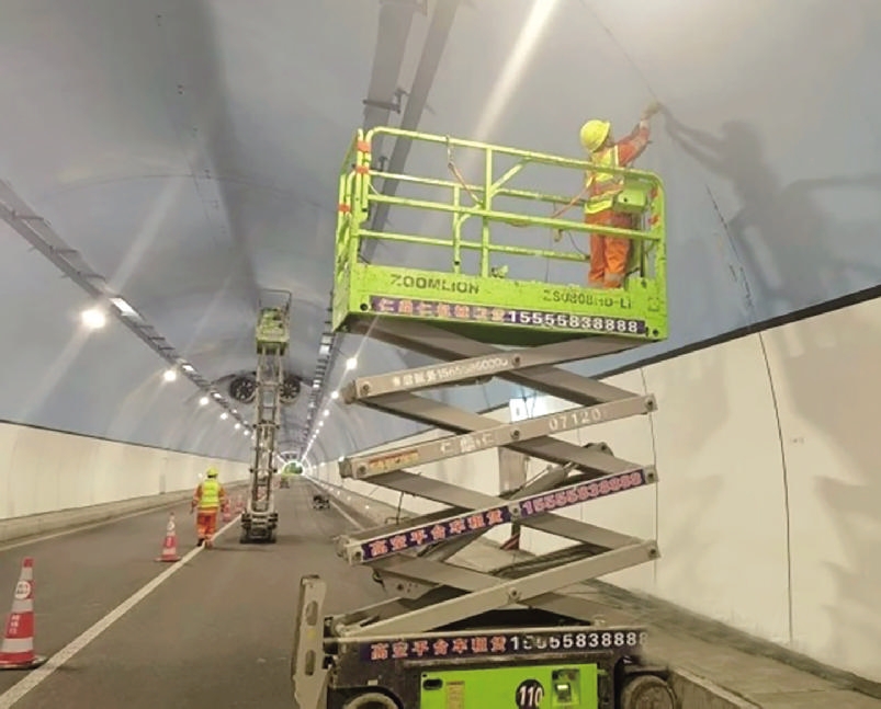 大湾岗隧道为长隧道,于2016年建成通车,上下行隧道均采用单洞单向行车,设计时速80公里。经数年运营上下行隧道内部均出现部分衬砌病害、涂层脱皮、盖板破损、内部渗水等问题。本次施工重点对隧道左右双洞土建结构和机电设施实施修复改造,并重点推进隧道病害路段进行土建结构修复、洞内涂装翻新、消防系统修复等。