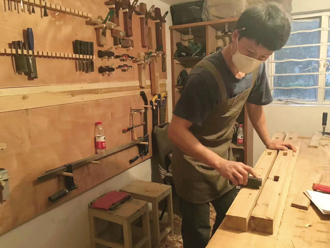 返工已经来不及,抱怨也毫无意义。于是,我拿起工具,决定亲手改造。那是我第一次真正接触木工,全凭一股“不甘心”的劲头。没有师傅指导,也没有系统学习,就靠着从网上零散看来的教程和直觉,一次一次地尝试。将木板一块块打磨平整、拼接吻合的过程中,一种前所未有的成就感悄然升起。那是我与木头的第一次对话,也成为我木工之路的起点。