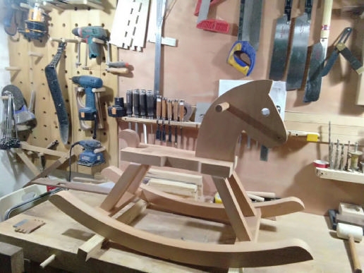 2015年,女儿出生了。我在那小小的车棚里,为她做了不少东西:木马、小板凳、小书架……木马是纯榫卯结构,没用一颗钉子,全靠木头的咬合力支撑。那些物件至今仍结实如初,榫卯分毫未动。每次看到她坐在我亲手做的木马上玩耍,坐在小板凳上看书,幸福感油然而生。当木工融入我的生活后,它对我而言,更是一种表达爱的方式。