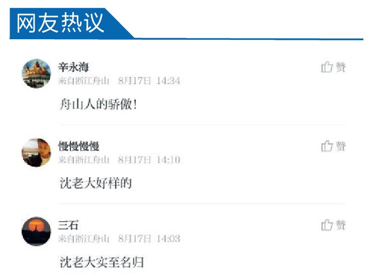 沈华忠这位平民英雄生长的“蓝土地”,也是英雄辈出的地方。为救落水渔民不幸牺牲的丁红武,定海海滨公园3位接力救人的普通市民、不顾严寒跳海救人的舟山船员许波……这些平凡的人平时或许并不起眼,但在危急时刻,那种积淀在心底的侠义就瞬间释放,尽显海洋环境孕育的扶危济困、助人为乐的城市基因底色,也成为驱动社会向善向上的强大力量。