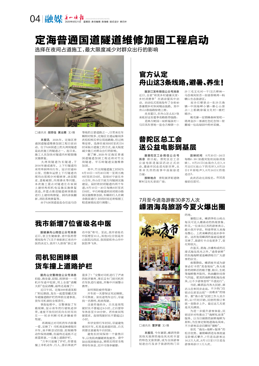 定海普通国道隧道维修加固工程启动