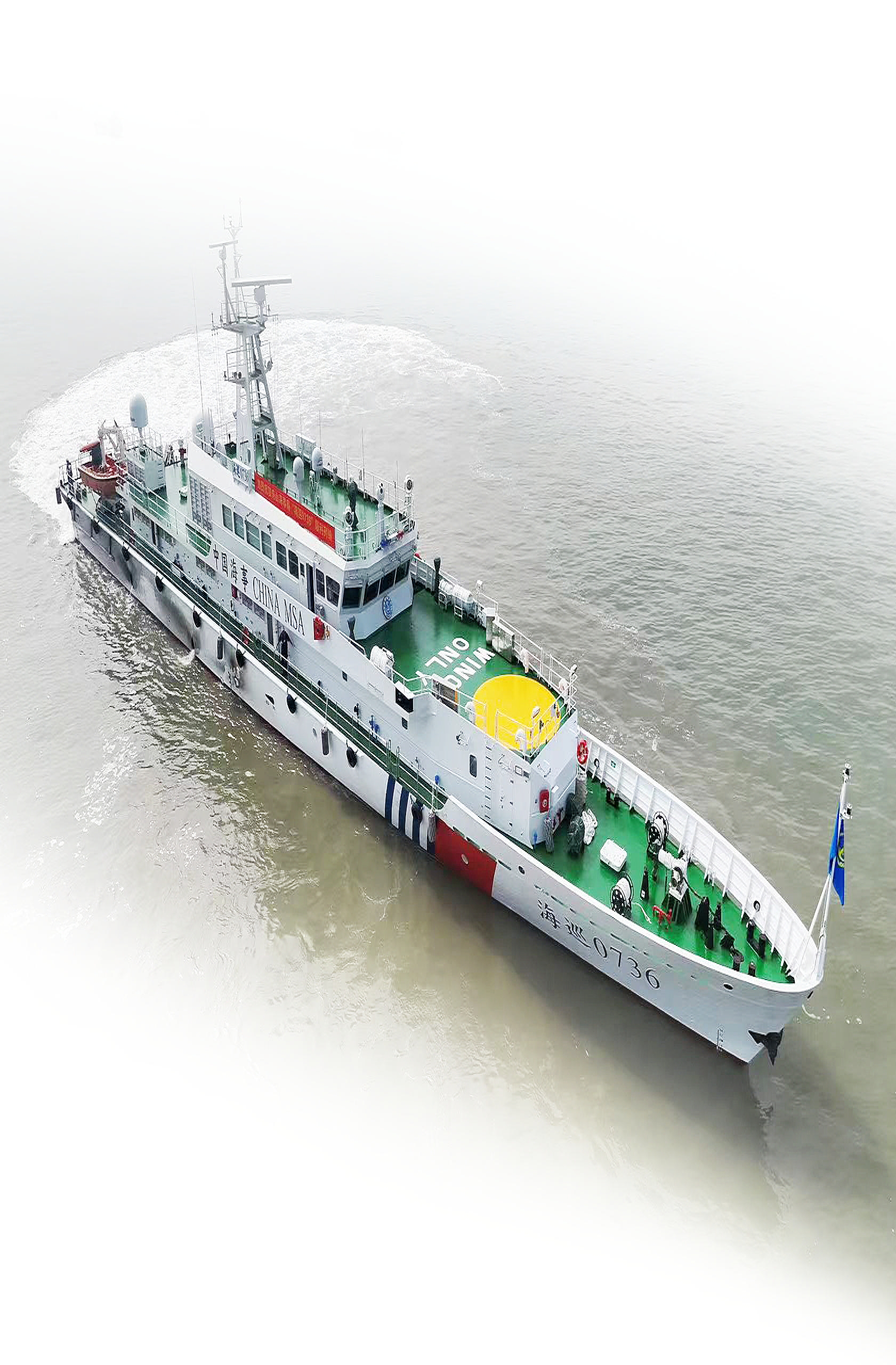 “海巡0736”总长69.65米,型宽8.7米、型深5米,抗风等级可达10级。在满载燃油、淡水和备品的情况下,巡航航速为18节时,续航力达2500海里。该船搭载“北斗三号”、天通卫星,配备无人机起降平台、光电取证系统、卫星通导等设备,可实现远洋执法数据实时回传,并与中国海上搜救中心联网,实时传输水文气象资料。它的列编,是浙江海事现代化装备体系建设的又一重要里程碑。