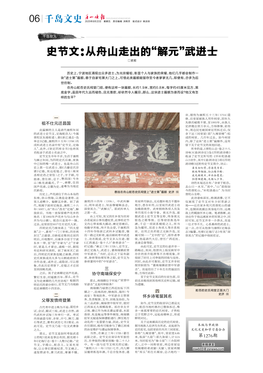 史节文:从舟山走出的“解元”武进士