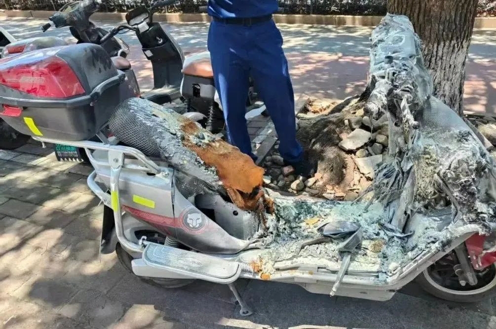 据舟山交警微信公众号消息近日,定海解放东路,一辆停在路侧的电动自行车突然发生自燃,没一会儿火势就燃至车辆全身。尽管现场有人用灭火器扑灭了明火,但车辆已燃至报废。
