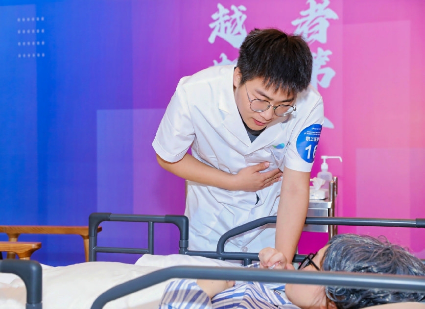 比赛中,与失明老人的沟通场景令他印象深刻:“需要提高音量,告知位置,简单交流,确保老人知道护理员的位置和动作。”这种细致入微的沟通技巧,正是他在日常工作中不断积累、在专业指导下反复锤炼的结果。