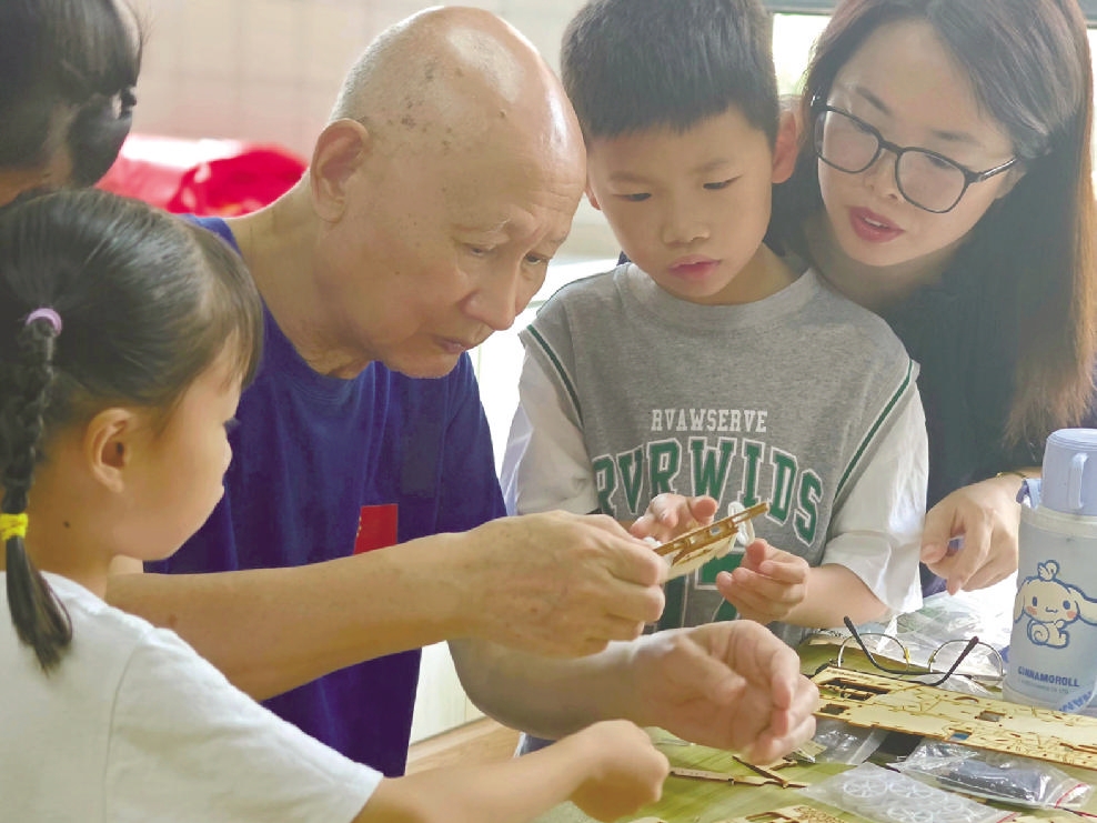 2024年,他从纸飞机入手,两节课下来,孩子们接触到了永不掉落的冲浪纸飞机、无动力飞机模型,不少小学生“超纲”好多年,学习了空气动力学等物理学科。“嘻嘻爷爷的课,有魔力,前半节课听不懂,后半节课不知不觉就把前面听不懂的内容学会了。上完一节课就想上第二节课。”去年就参加过课程的小陈同学告诉记者,今年,他一听说王嘻嘻又来上课,就督促父母报名,“太火爆了,我们刚报完,15个名额就没了。”
