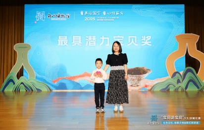 幼儿组的小选手同样令人惊喜,十号选手带来了对清代木雕添金如意的讲解,虽然嗓音稚嫩,但他丰富的肢体动作和细致流畅的讲解引得现场观众笑声连连。孩子们用童趣视角解读文物,让历史不再遥远,而是可触可感的“身边故事”。