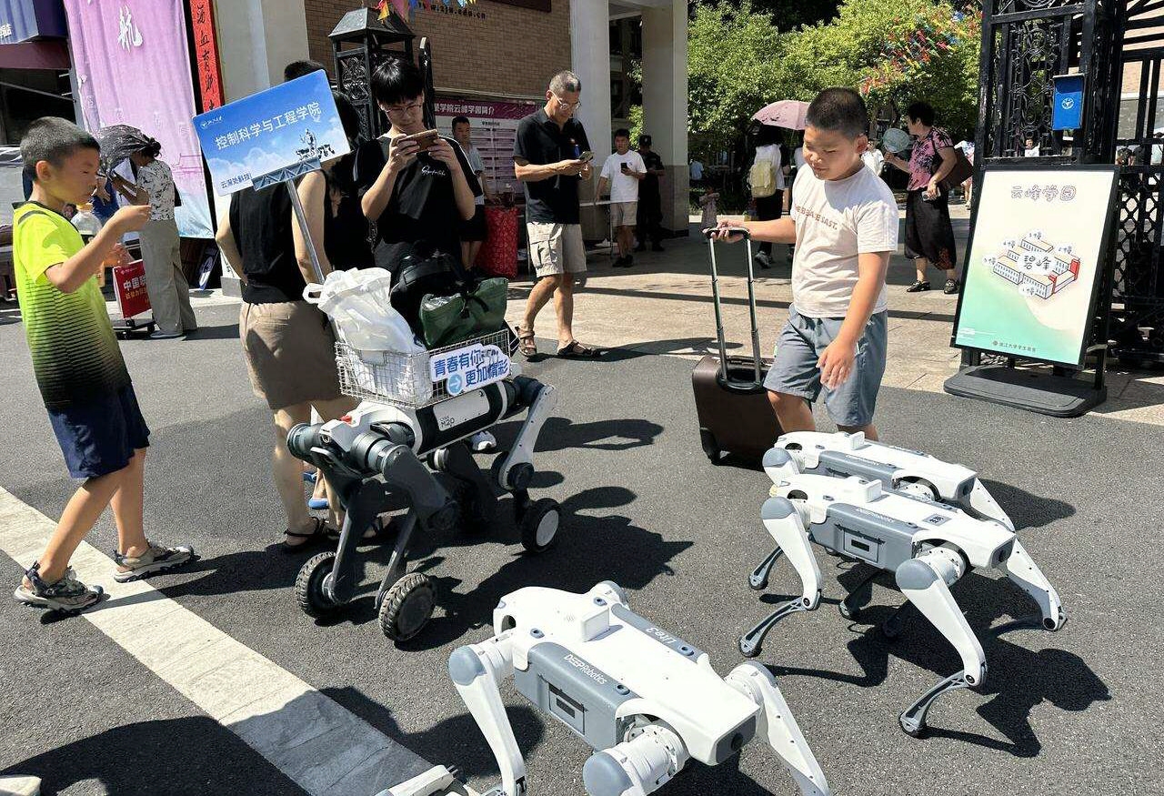 8月22日,浙大紫金港校区秒变“科技秀场”,云深处科技的机器狗小队穿梭人群,又干活又卖萌,新生们纷纷直呼:这也太酷了吧!