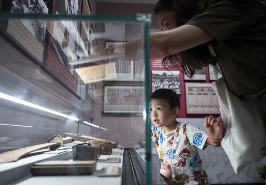 8月25日,八路军武汉办事处旧址纪念馆“英雄城市抗战烽火”基本陈列正式对公众开放。展厅面积约400平方米,展览分为“共赴国难”“中流砥柱”“大江洪波”“敌后抗战”四个部分,通过文物、图片、复原场景、声光电多媒体互动等方式生动阐释“英雄城市抗战烽火”的具体内涵。 新华社记者 伍志尊 摄