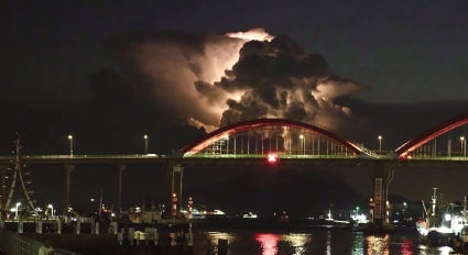 据孙女士介绍,这是她在新城岙山大桥上拍到的。起初以为是自己手机的闪光灯,没想到随手的拍摄却拍到了“云中闪电”。远远望去,云中闪电连续快速地亮起、熄灭。巨大云团与月同框,真被大自然美到了。