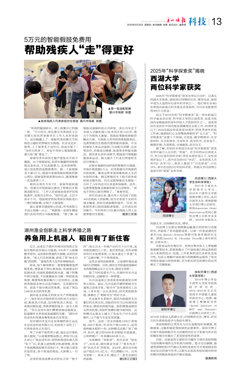 西湖大学两位科学家获奖