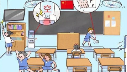 室内:迅速躲避在课桌下或讲台旁,用书包保护头部。