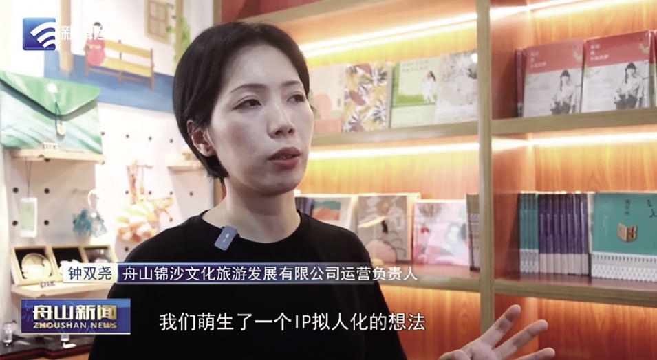 在定海小沙三毛祖居一侧的文创小屋内,舟山锦沙文化旅游发展有限公司运营负责人钟双尧常常向游客热情介绍各类产品。从杜邦纸袋、手机背夹到抱枕、冰箱贴,印有“沙沙萌团”系列卡通形象的产品琳琅满目,吸引不少游客驻足。一位游客拿起“长白对虾”产品满意地表示:“颜色特别漂亮,一眼就喜欢。”
