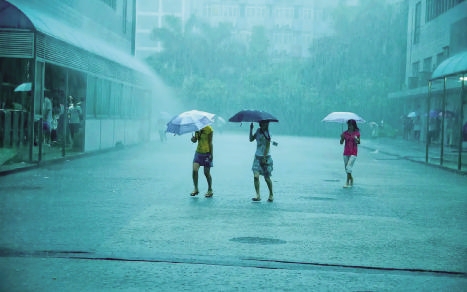 2008年6月,电子厂女工冒雨赶去上班