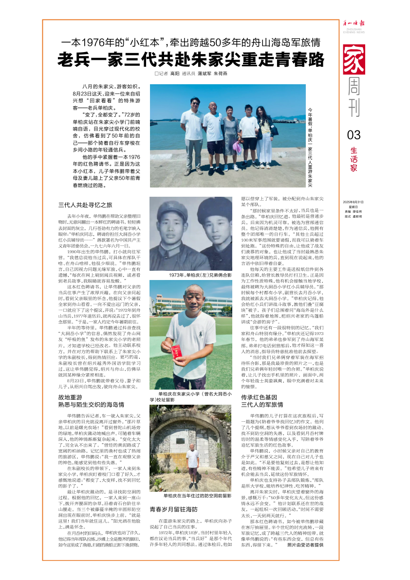老兵一家三代共赴朱家尖重走青春路