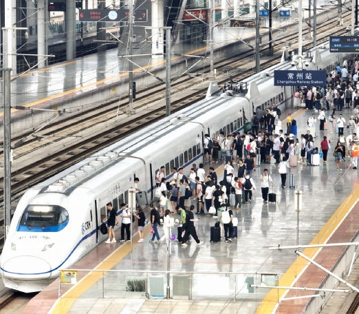 8月31日,旅客在江苏常州火车站乘车出行(无人机照片)。当天,为期62天的2025年全国暑运落下帷幕。新华社发
