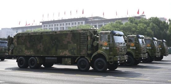 信息支援方队受阅装备由战场网云车、数智赋能车、天地组网车、信息融合车组成,能够快速构建新型网信体系、有力支撑联合作战。