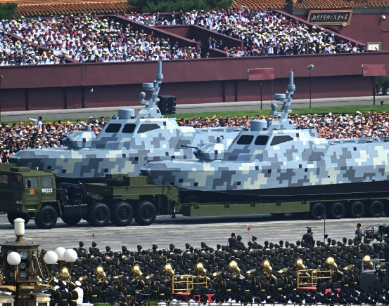 海上无人作战方队:创新海战样式的“奇兵利器”自主巡弋,出击深蓝。海上无人作战方队3日上午通过天安门广场,接受祖国和人民检阅。