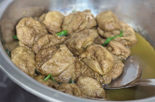 三十年灶火,“阿姆”的一生执着施亚凤的拿手菜都是舟山传统老菜,灶头功夫到位。葱烤肉选用肥瘦相间的五花肉,炖得酥烂,葱段吸饱了肉汁,香而不腻。鳗鲞烤肉是耳熟能详的舟山老底子菜,咸香的鳗鲞与肉红烧,咸鲜交融,超级下饭。红烧大肠的大肠处理得干净,软糯有嚼劲,酱香浓郁。什锦羹集结了熏鱼、蛋饺、面结、花菜等舟山人吃惯的老口味,用料丰富,勾芡恰到好处,盛上一碗暖心暖胃。